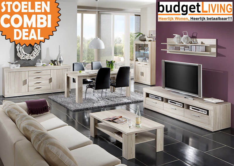 Wist je dat alle woonkamers uit deze blog voorzien zijn van een combideal voor eetkamerstoelen? Dat betekent dat je bij aankoop van een van de sets ook nog een aanbieding ontvangt voor stoelen, al vanaf €30,00 per stuk. Je kunt helemaal zelf bepalen welke stoelen je graag wilt hebben. Onze showroommedewerkers vertellen je er graag meer over. Dus kom snel langs!