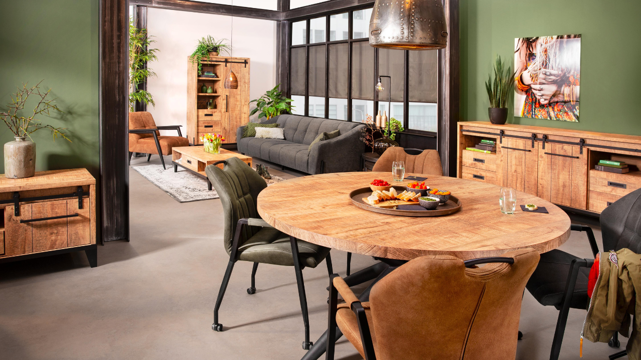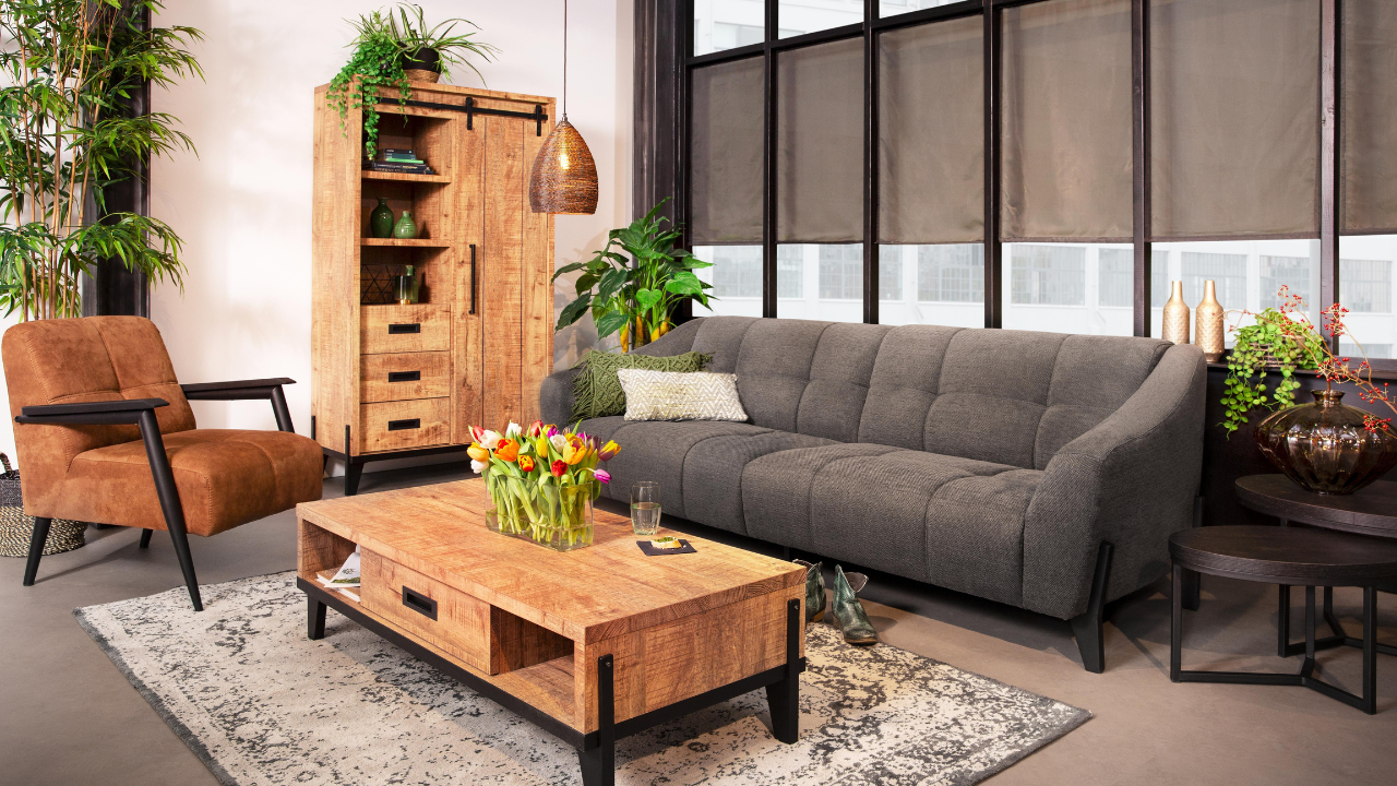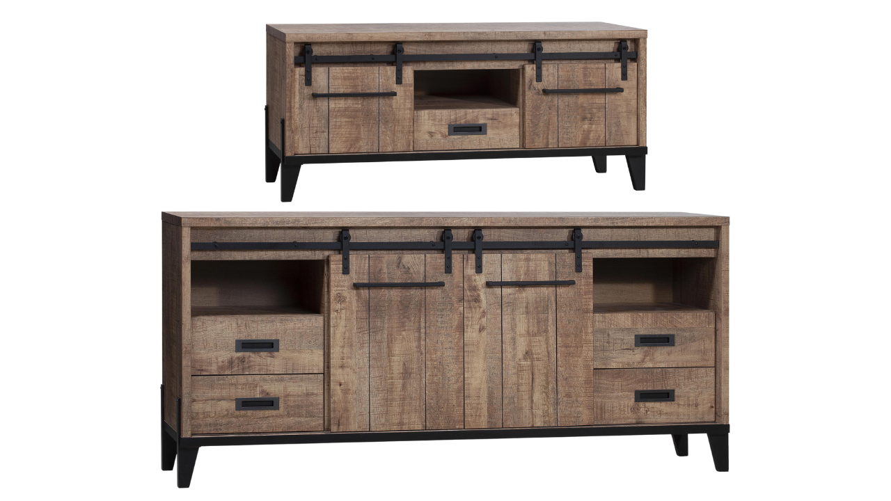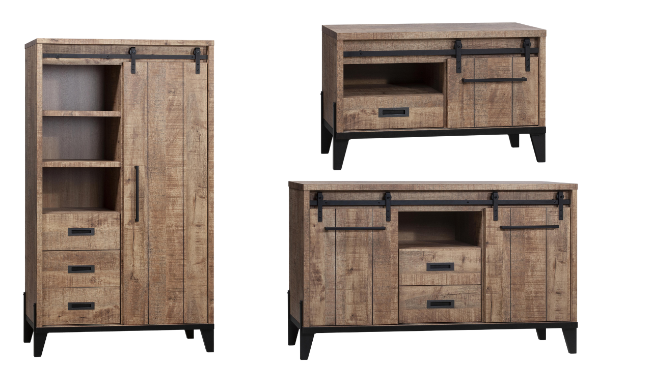 Hier vindt u de woonkamer Viga, een prachtige strakke woonkamer set in de Industriële woonstijl. Door het trendy Mango lux decor geeft deze woonkamer een warme en sfeervolle uitstraling aan iedere ruimte. Kenmerken van deze woonkamer zijn de stoere schuifdeuren, stalen zwart stalen poten en robuuste grepen. Tevens zijn alle lade voorzien van een luxe softclose systeem.
