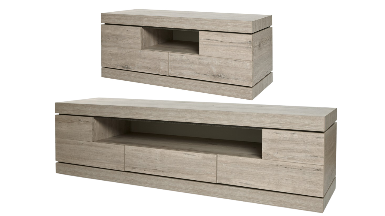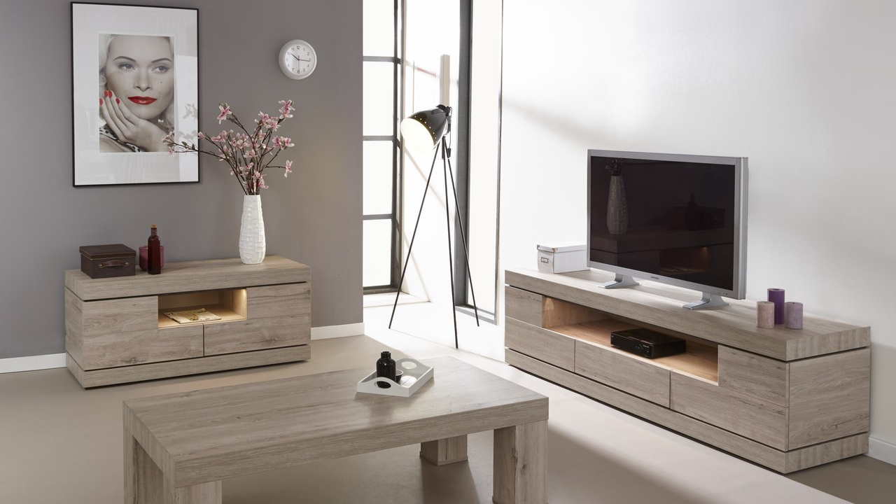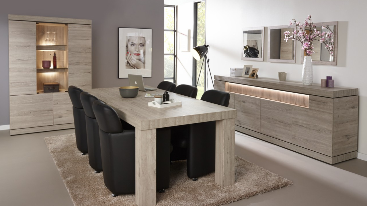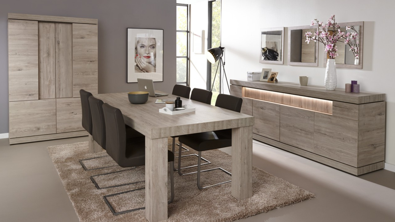 Een standaard woonkamer set bestaat uit: Dressoir + Salontafel + Eettafel (telkens de kleinste uitvoering)