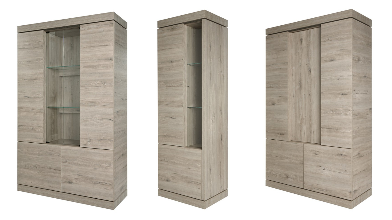 Hier vindt u de woonkamer Ethereum, een moderne robuuste strakke woonkamer set. Door het neutrale millenium licht eiken decor decor geeft deze woonkamer een tijdloze uitstraling aan iedere woonkamer. Kenmerken van deze woonkamer set zijn de dikke bovenbladen, greeploze deuren en marmer decor details. Tevens zijn alle lade voorzien van een luxe softclose systeem en alle kasten uitgevoerd met LED verlichting.
