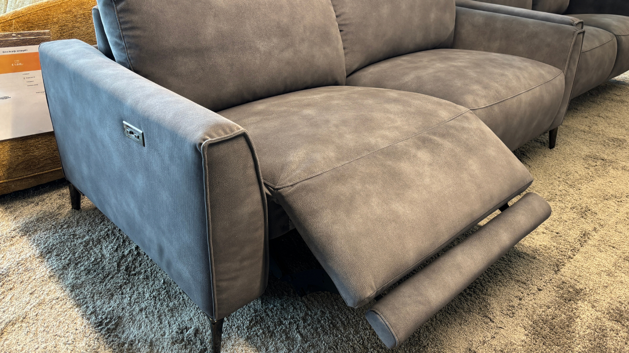 Deze comfortabele 2,5 + 2-zits relaxbank in zachte antraciet microvezel combineert stijl met ultiem zitgemak. De 2,5-zits is uitgerust met 2 elektrisch verstelbare zit- en rugleuningen voor optimale ontspanning. Nu extra voordelig in onze outlet!